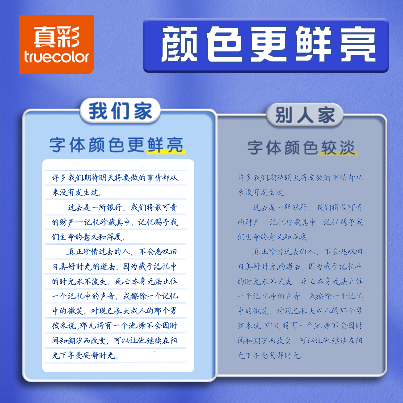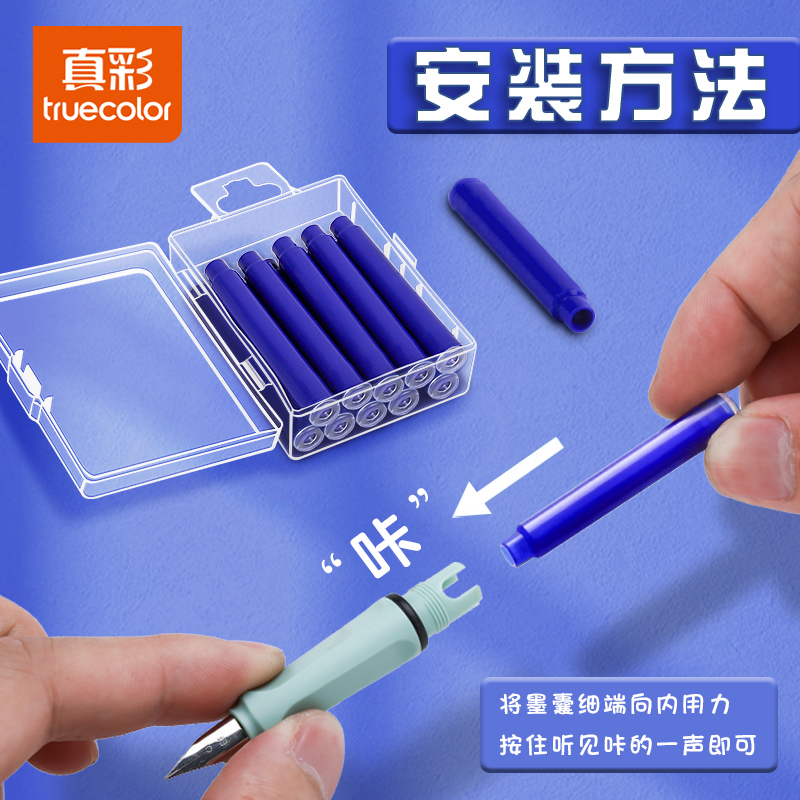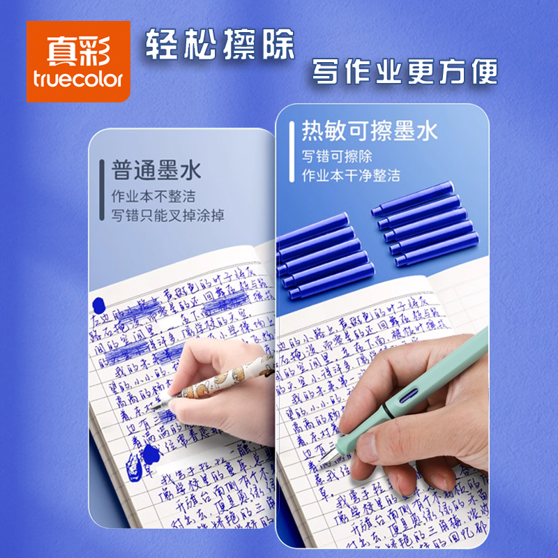 真彩热敏可擦钢笔墨囊小学生专用蓝色墨水纯蓝三年级晶蓝蓝黑色通用可替换34mm盒热可擦学生可换墨蓝色墨囊式