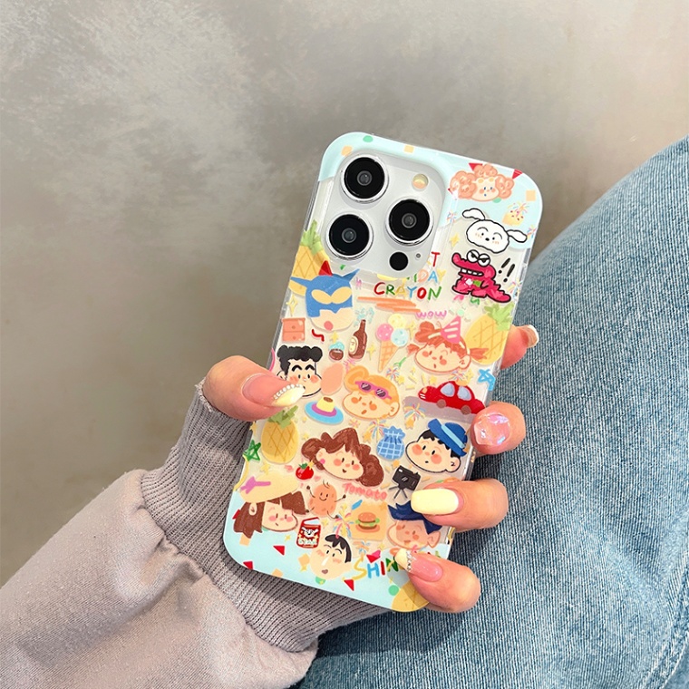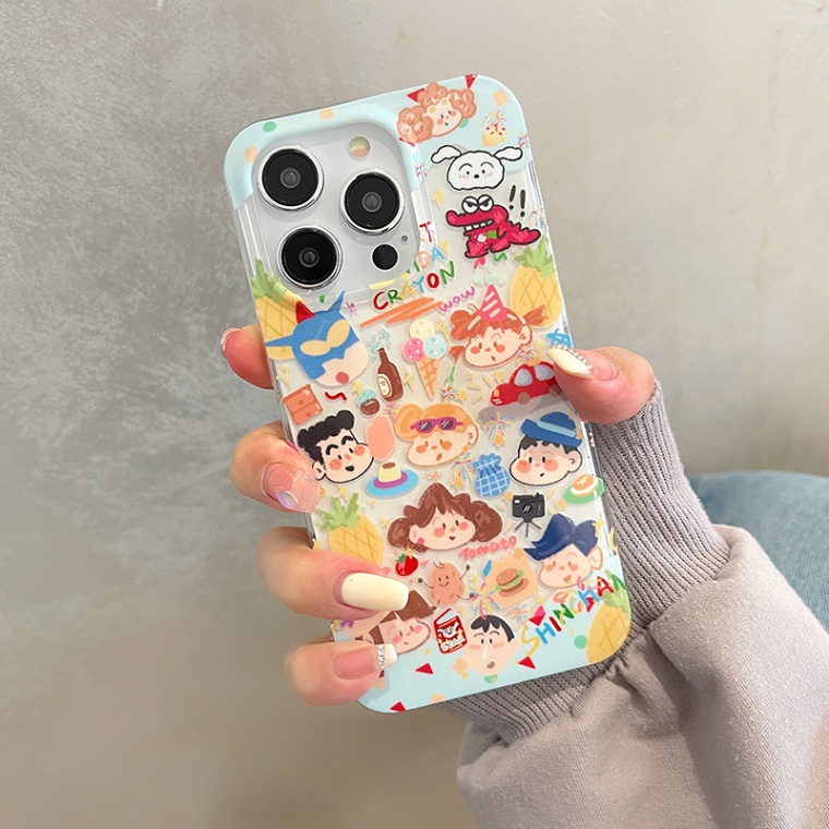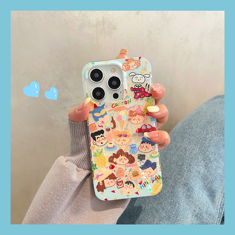 ins风可爱卡通小新合集适用苹果16promax手机壳iphone15pro小众高级感13网红14保护套max新款女款防摔高级感
