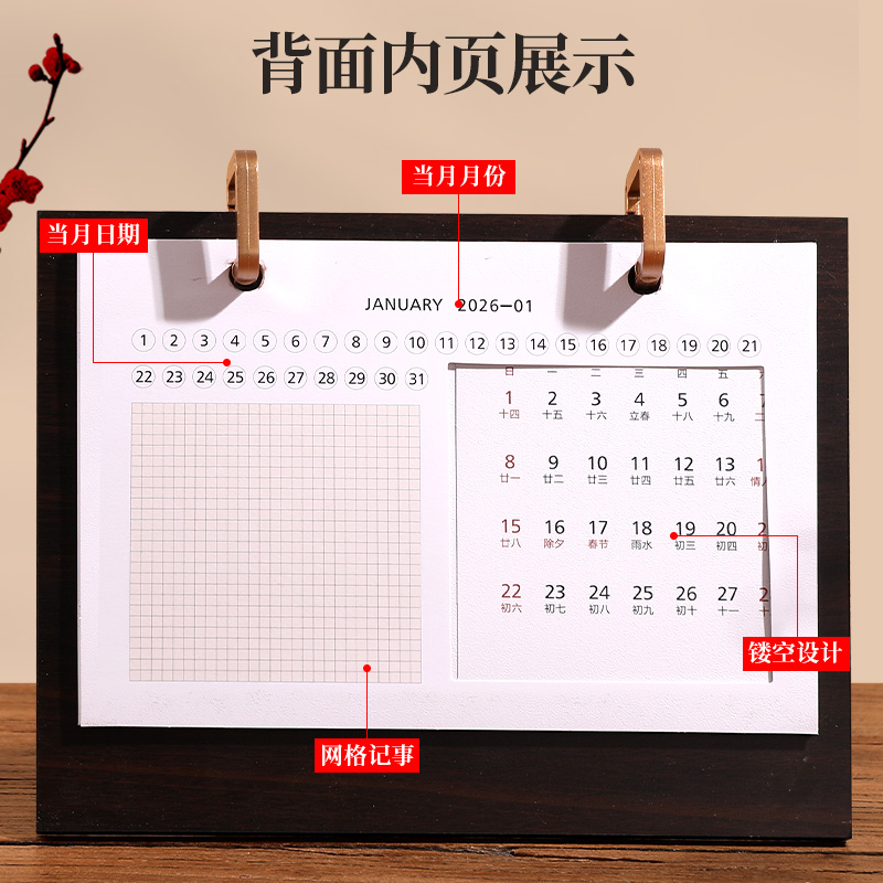 台历定制2026年最新款国风简约镂空台历商务办公桌面摆件可定制企业logo广告设计网格记事本内页镂空设计台历