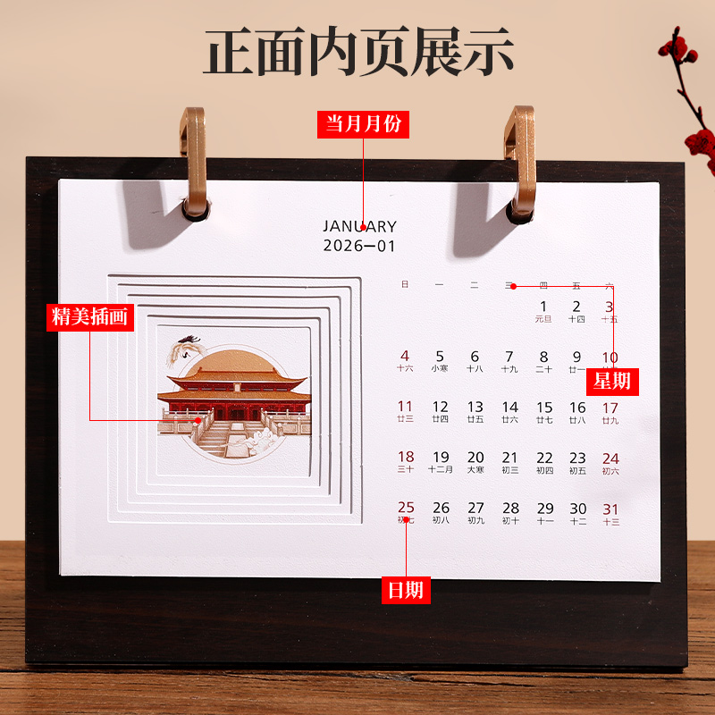 台历2026年新款日历定制logo创意简约小清新韩式办公年历个性中国风桌面摆件商务工作记事计划本订制广告月历