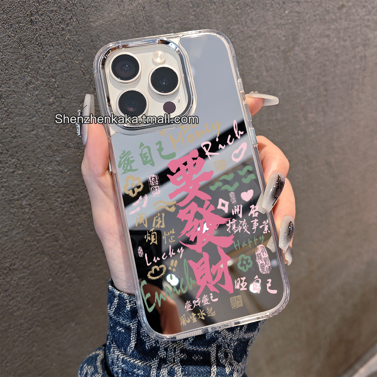 带镜子苹果17要发财适用16promax手机壳新中式文字小米15华为pura80高级感nova13好运opporeno14女生vivox200