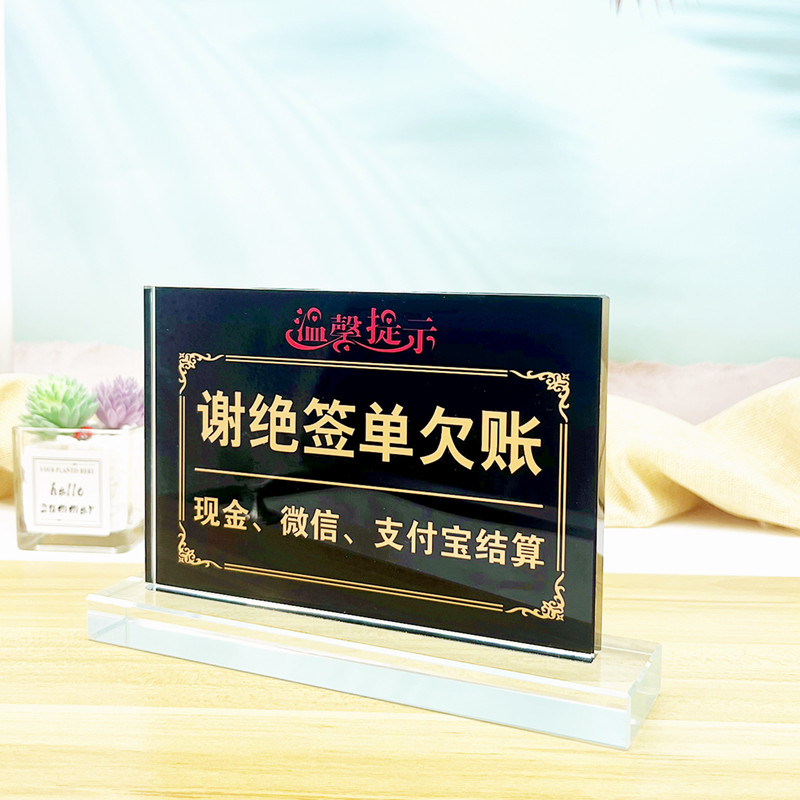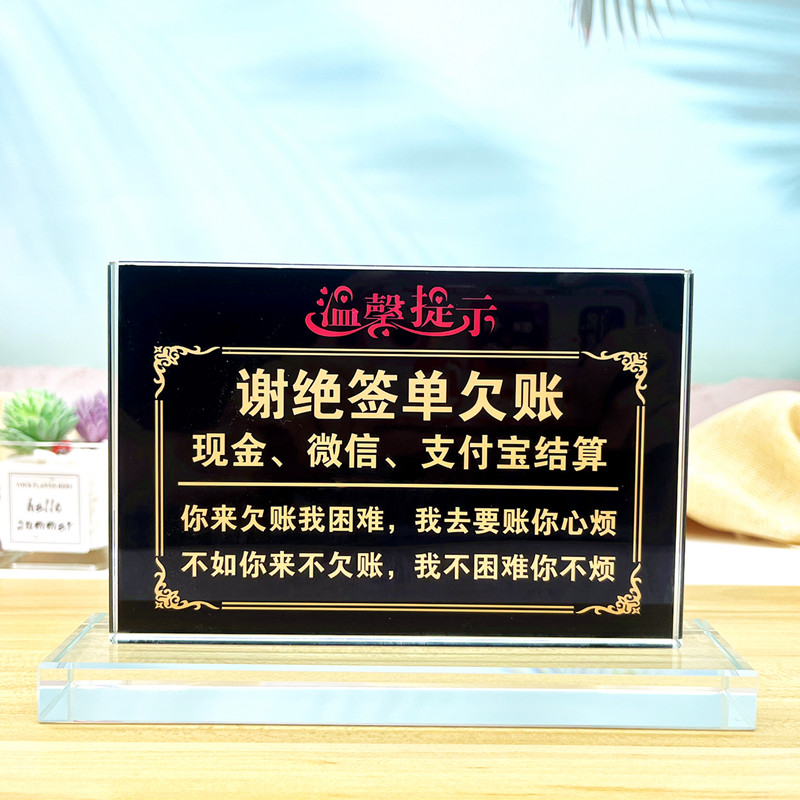 本店概不赊账台签桌牌温馨提示牌谢绝赊J欠账免开尊口水晶提示台