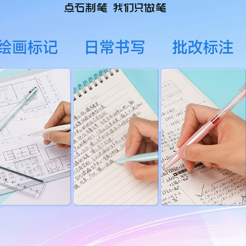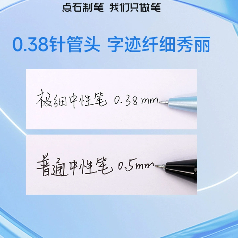点石制笔DS0149琉璃镜按动中性笔0.38mm针管头刷题笔细长杆黑红蓝