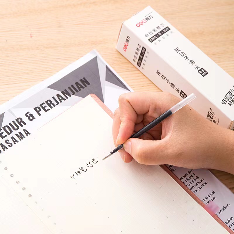 deli得力S206按动笔芯弹簧头中性笔替芯0.5子弹头学生用办公爆款