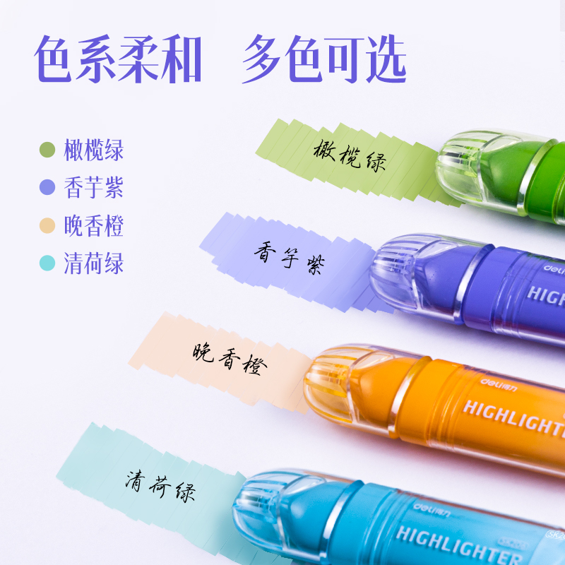 得力荧光笔高颜值手账笔标记笔划重点DIY笔学生用彩色小蛋壳柔和