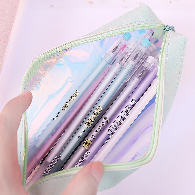 镭射笔袋韩国创意可爱小清新学生简约少女心大容量文具透明铅笔袋
