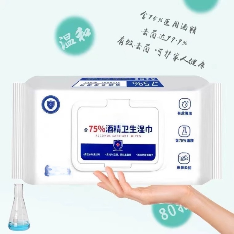 酒精消毒湿巾含75度湿纸巾成人杀菌家用带盖杀菌消毒湿巾手口可用