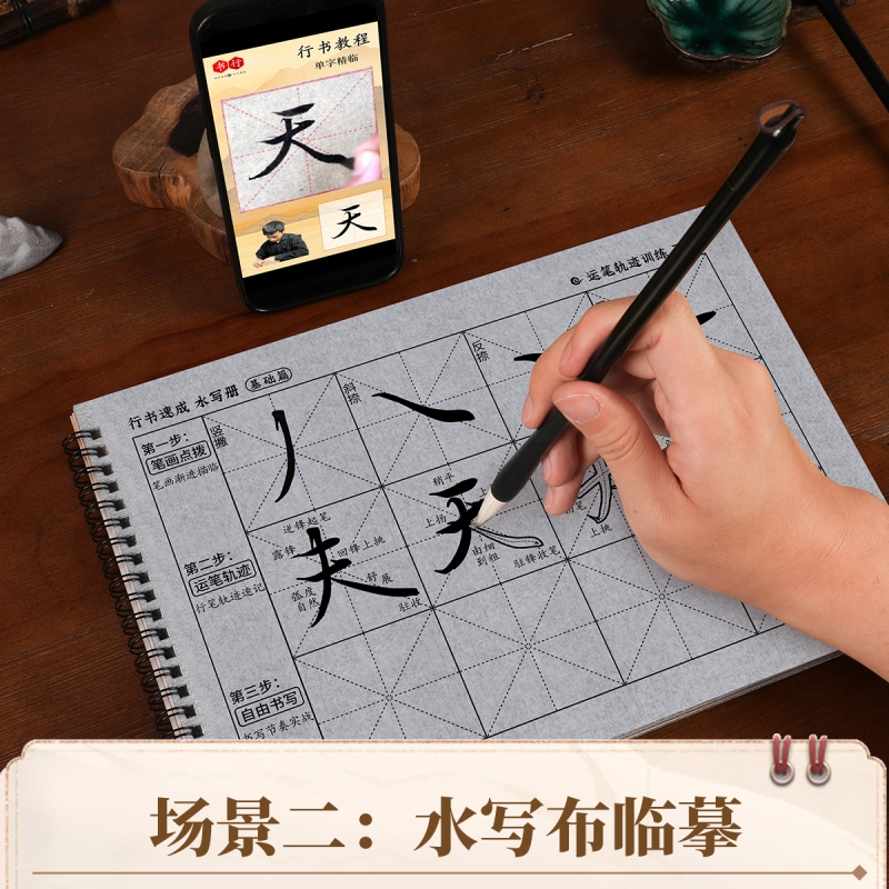 行书水写毛笔字帖练字专用小学生毛笔字水写本套装书法练字纸水写书沾水写字布楷书入门临摹初学者练习偏旁硬笔训练笔画笔顺部首