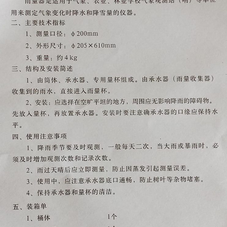 20量cm 整体0雨高60径 mm量计仪器雨式口 教学筒不锈钢