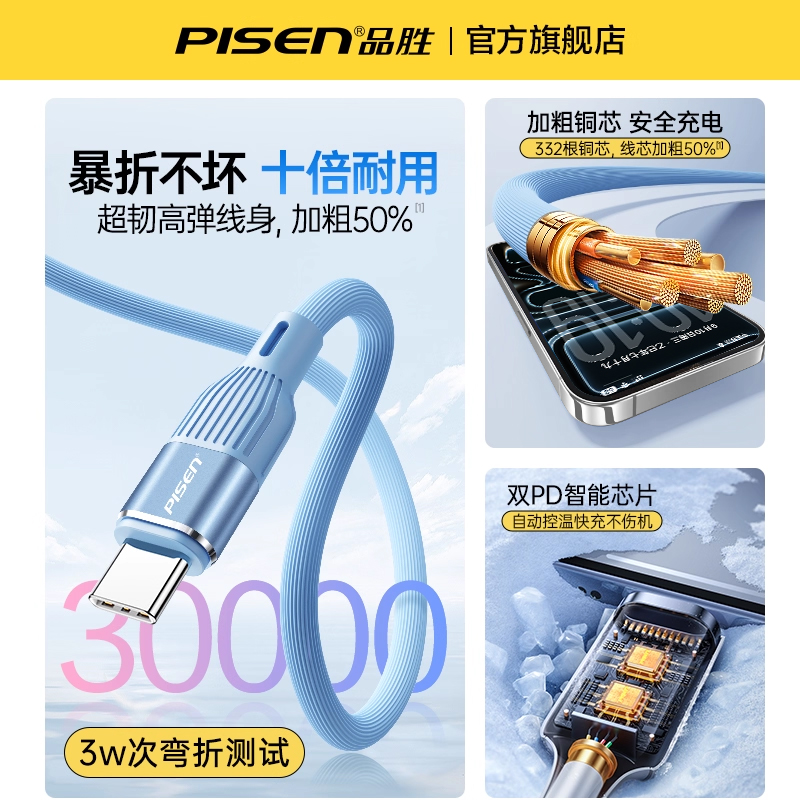 品胜type-c数据线6A超级快充100W适用华为小米vivoOPPO荣耀mate70安卓88W66W充电线tpyec手机车载平板笔记本