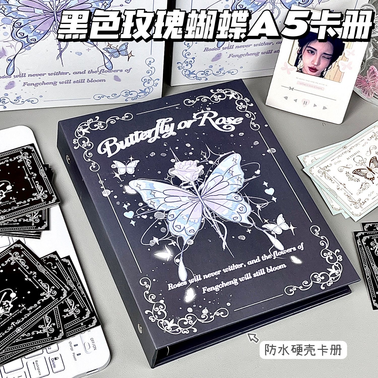 绝美蝴蝶玫瑰ins卡册活页四宫格高颜值超硬A5外壳追星卡收纳册