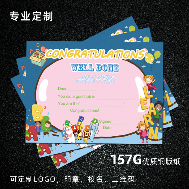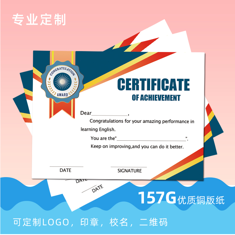 小学生英语奖状A4英语之星奖状表扬卡初中小学培训班英语奖状证书