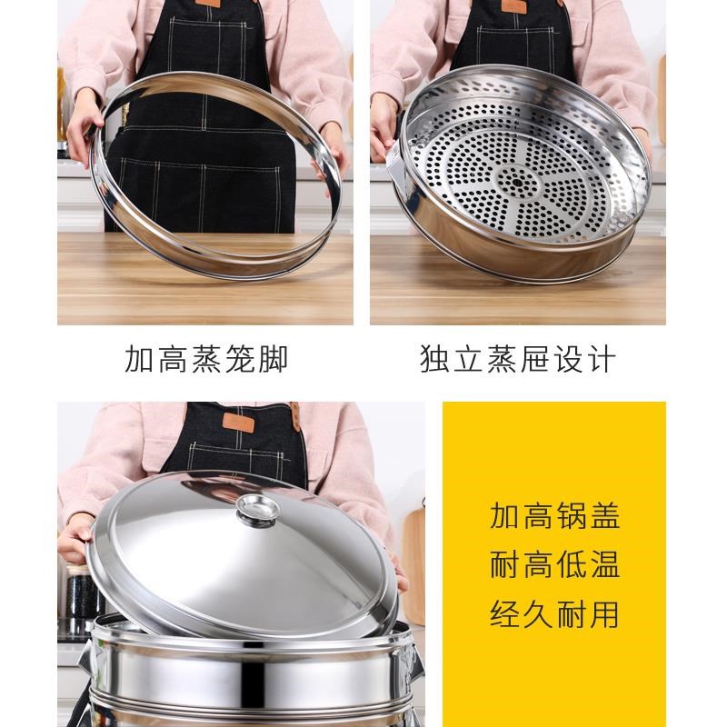 蒸笼加厚锈钢屉多层商蒸蒸格圆形家用包不子O馒头大容用量蒸锅笼