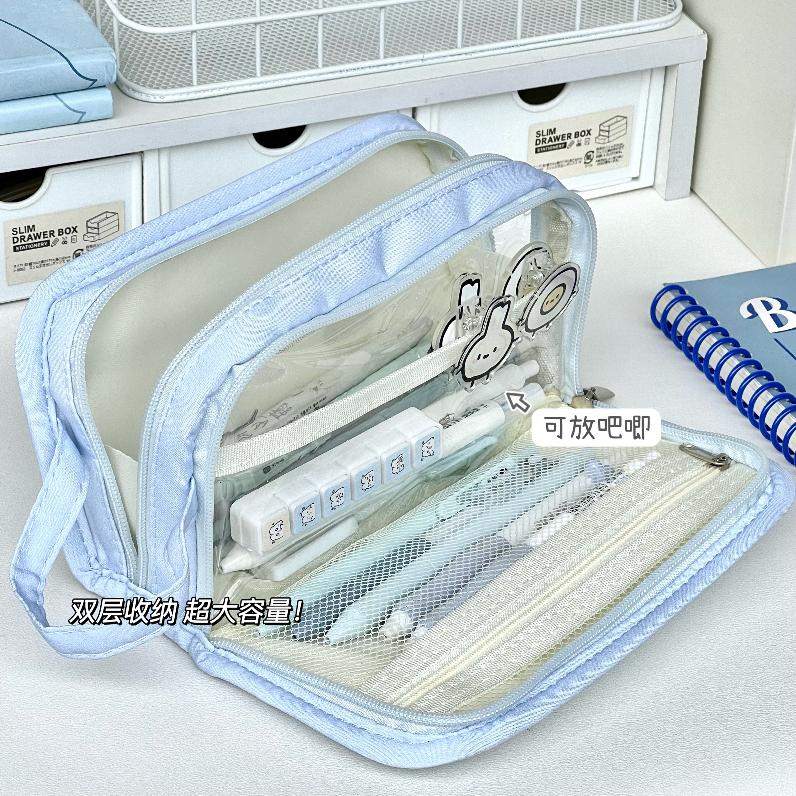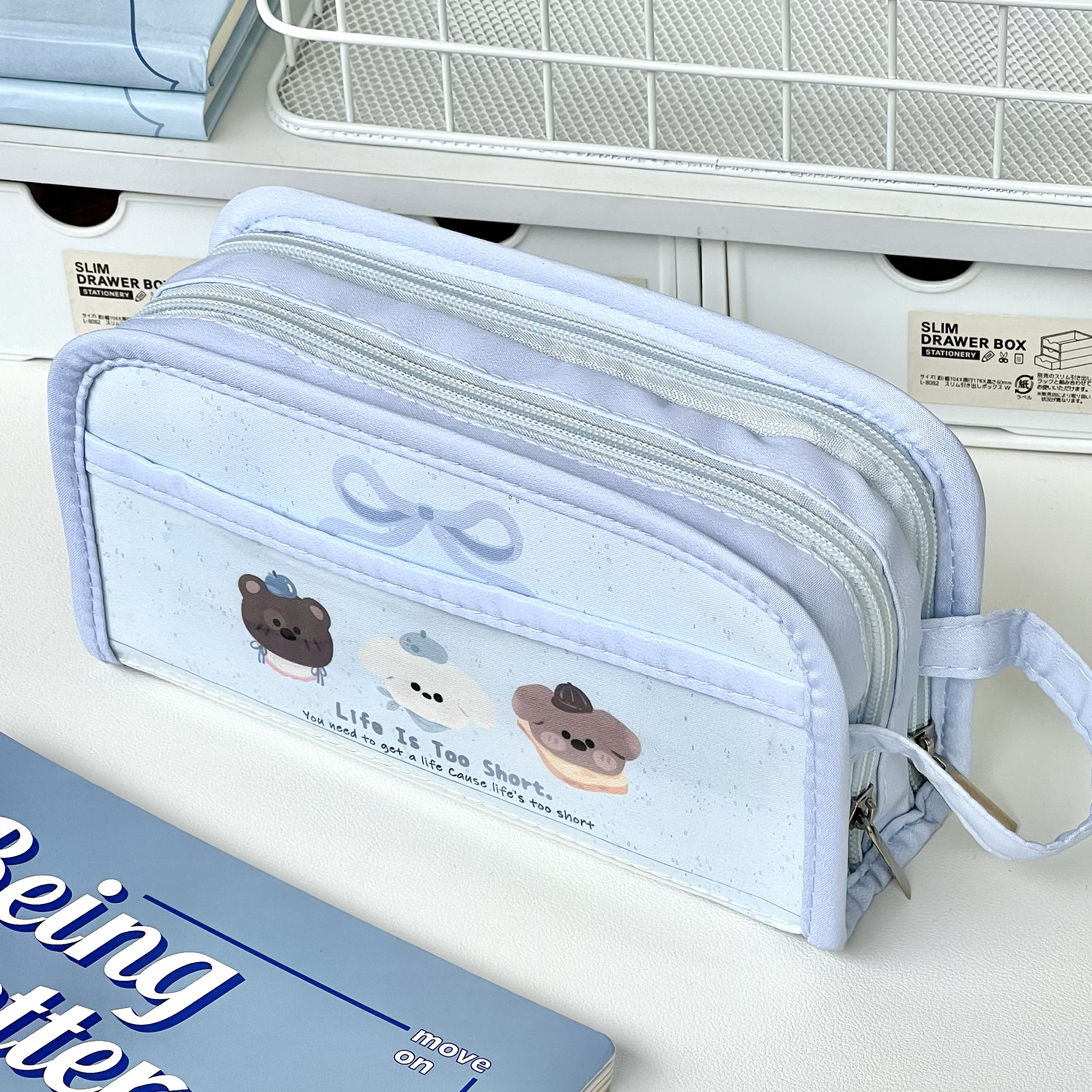2025年新款手提三只可爱小狗笔袋高颜值大容量痛包铅笔袋多层小众不撞款铅笔盒少女心收纳包初高中生文具盒