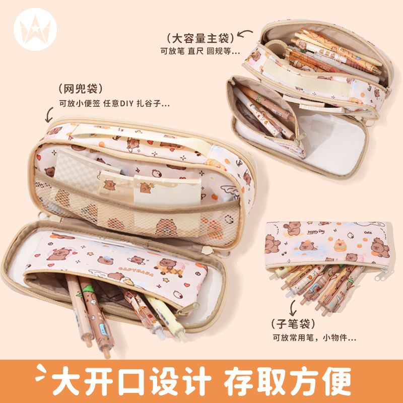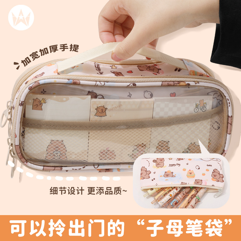 新款卡皮巴拉子母笔袋小学生高颜值大容量文具盒痛包初中生儿童男孩女孩款加大铅笔盒创意多功能女生用男孩款