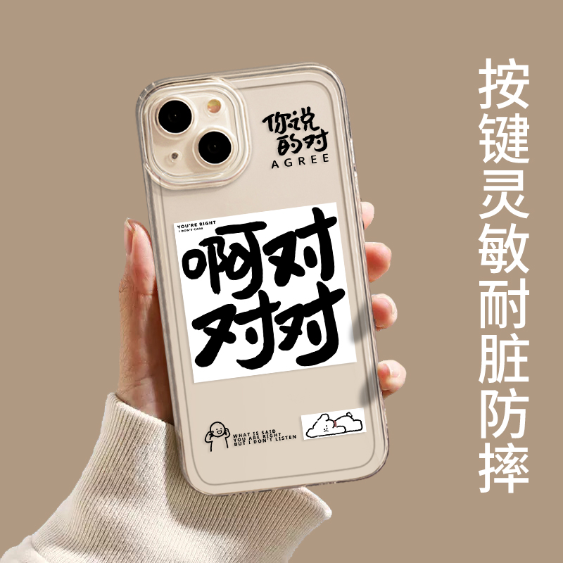 啊对对对手机壳适用苹果15创意iphone14promax男女13个性12mini趣味11新款x文字8plus搞怪xr透明xs防摔16软套