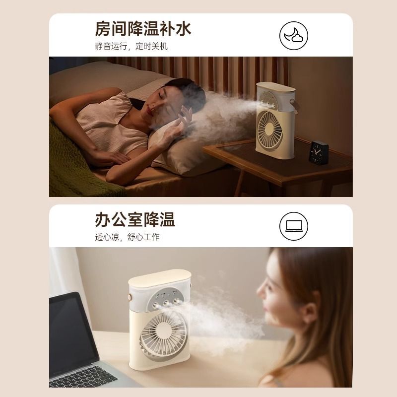 桌面风扇USB充电纳米喷雾加湿器风扇学生宿舍家用空调房补水保湿