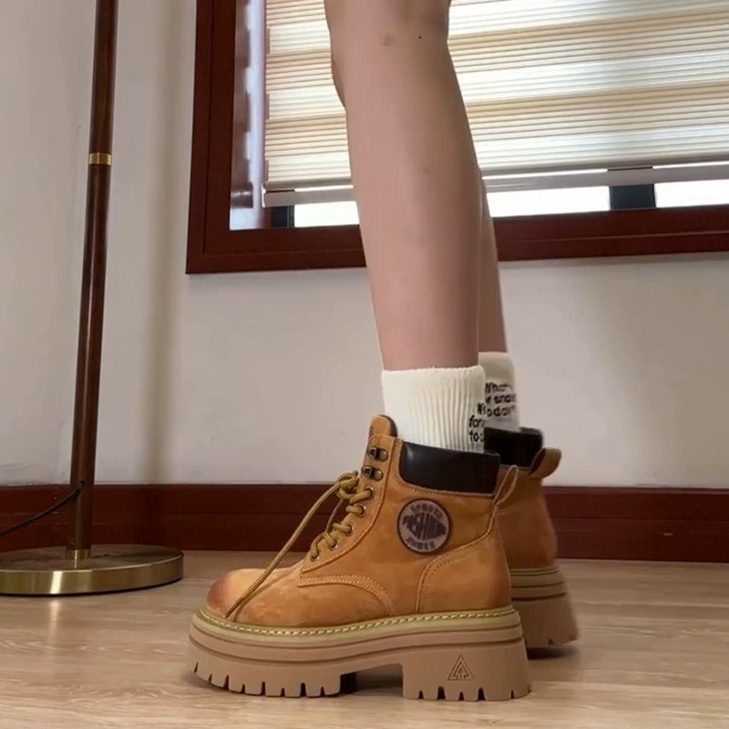骆驼山越马丁靴女鞋2025秋季新款户外英伦工装登山增高大黄靴子女