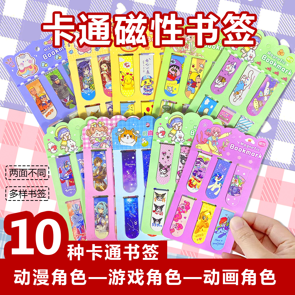 三丽鸥卡通磁性书签高颜值创意中小学生奖品动画双面磁吸书夹书签