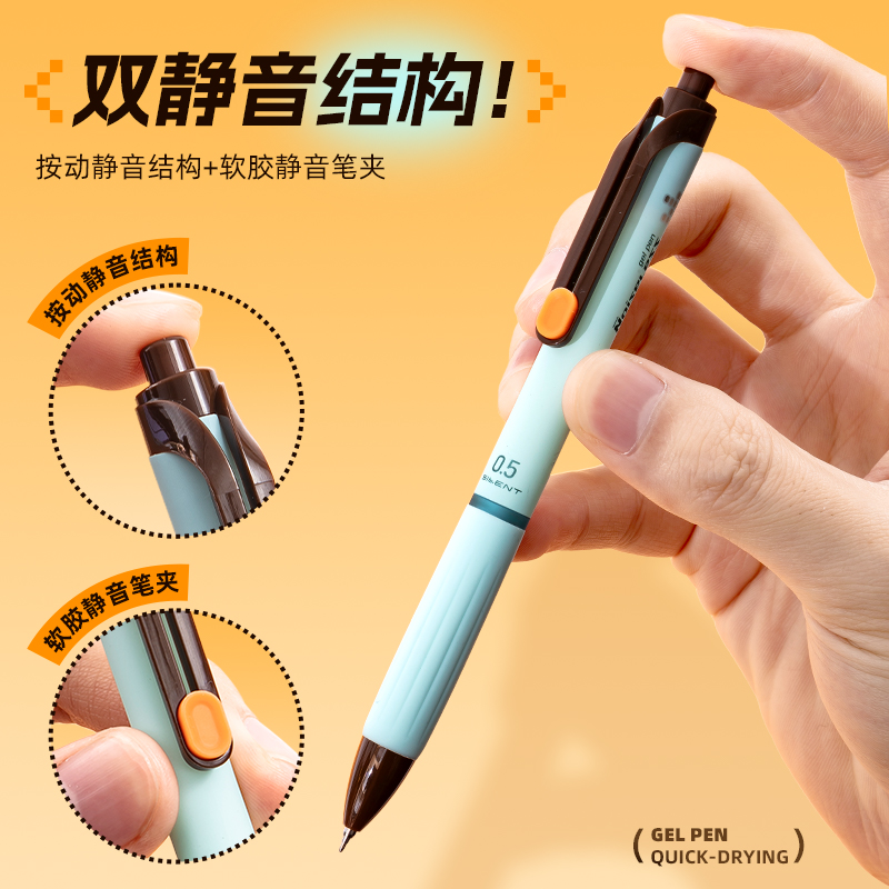 晨光静音笔特别好写AGPK3301静音中性笔刷题笔按动笔ST笔头速干碳素黑笔初中生考试专用大墨王笔芯无声按动笔
