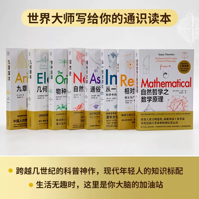 全套8册】科学通识读本 自然哲学之数学原理+相对论+从一到无穷大+九章算术+物种起源+自然史+几何原本+通俗天文学 新华书店正版