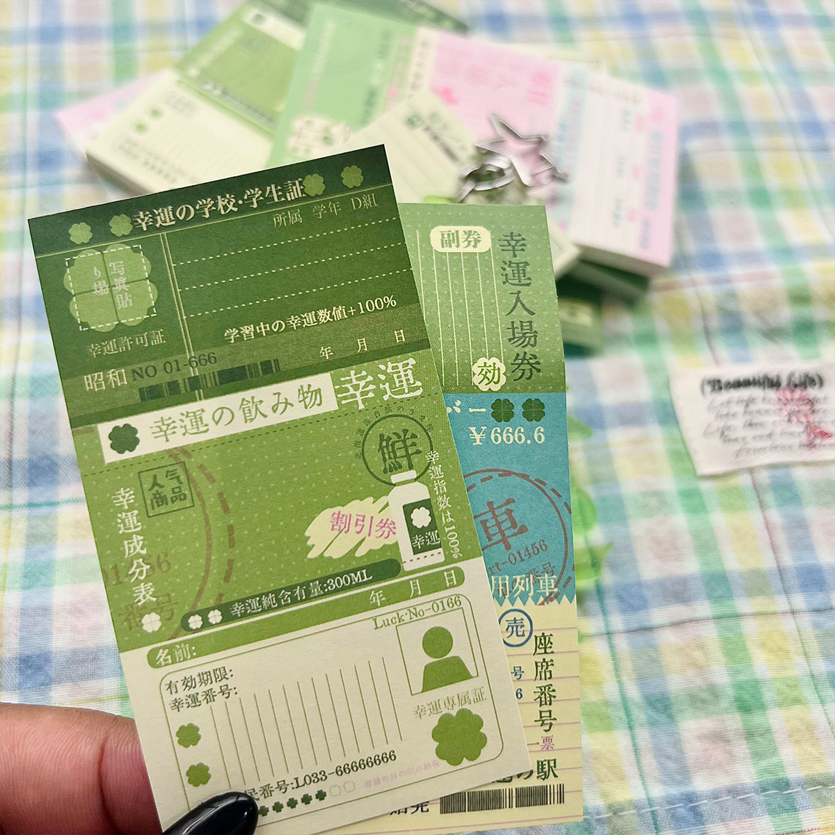 哇卡哇卡四叶草便签本幸运指数票据三联迷你小鼻嘎手账素材拼贴