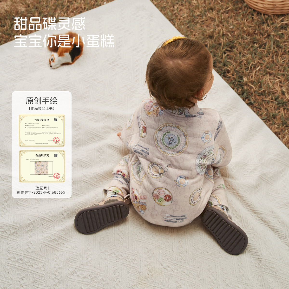 全棉时代双层纱布蝴蝶衣纯棉新生儿婴儿衣服宝宝连体衣春夏睡衣薄
