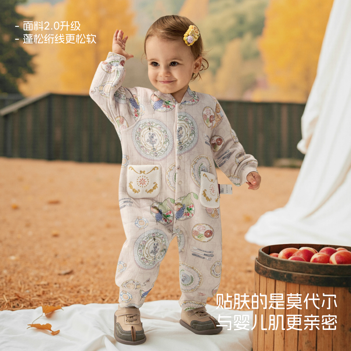 美妙音阶夹棉婴儿连体衣保暖春秋款新生儿衣服宝宝哈衣加厚秋冬季