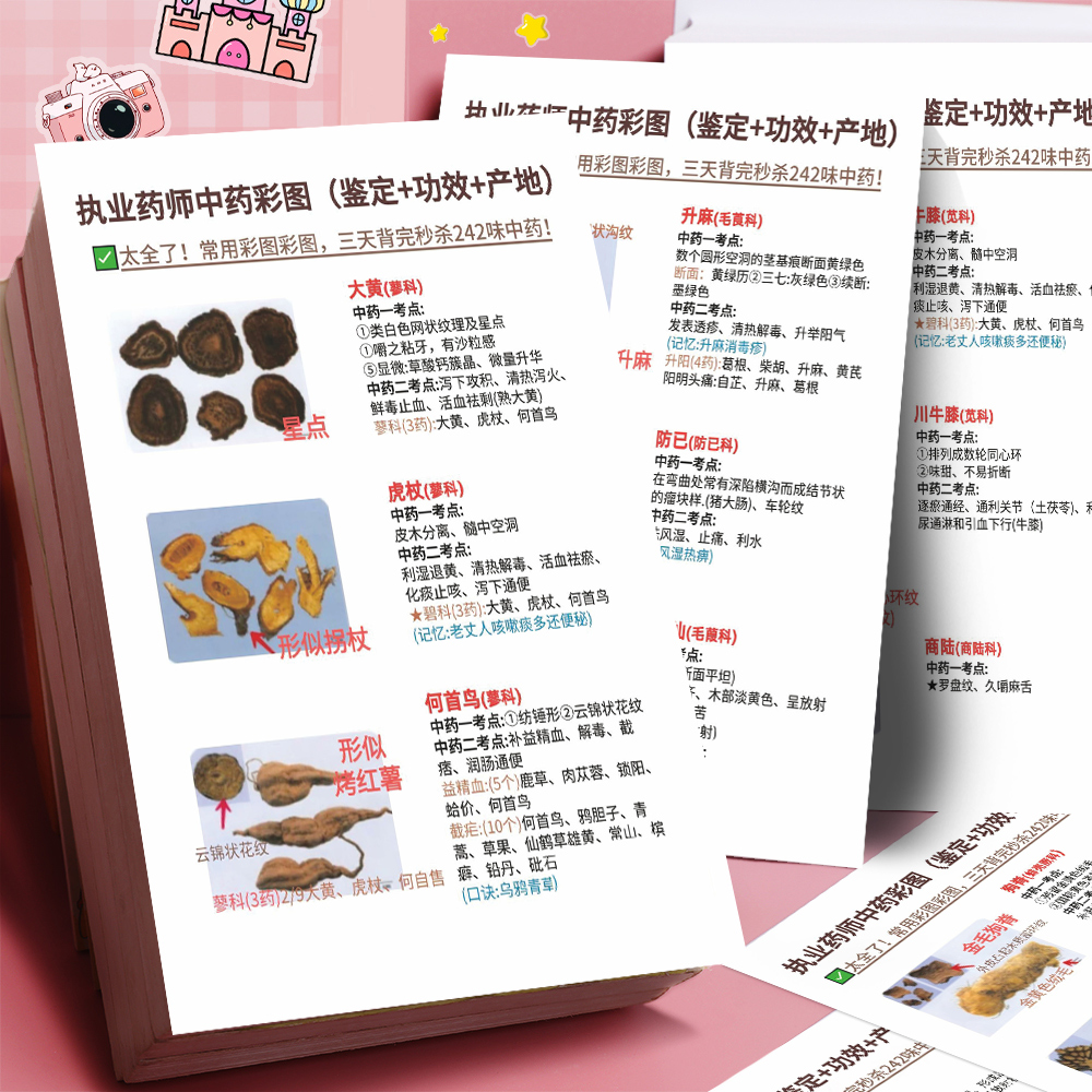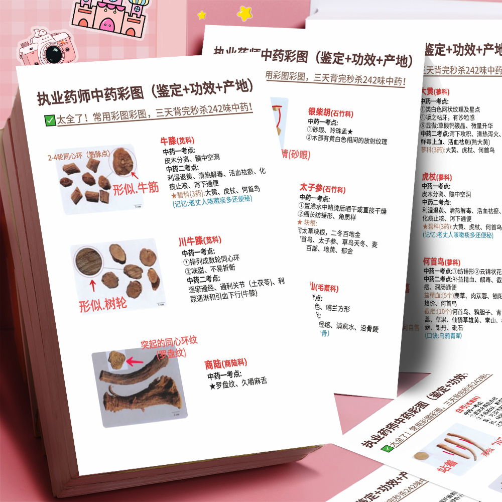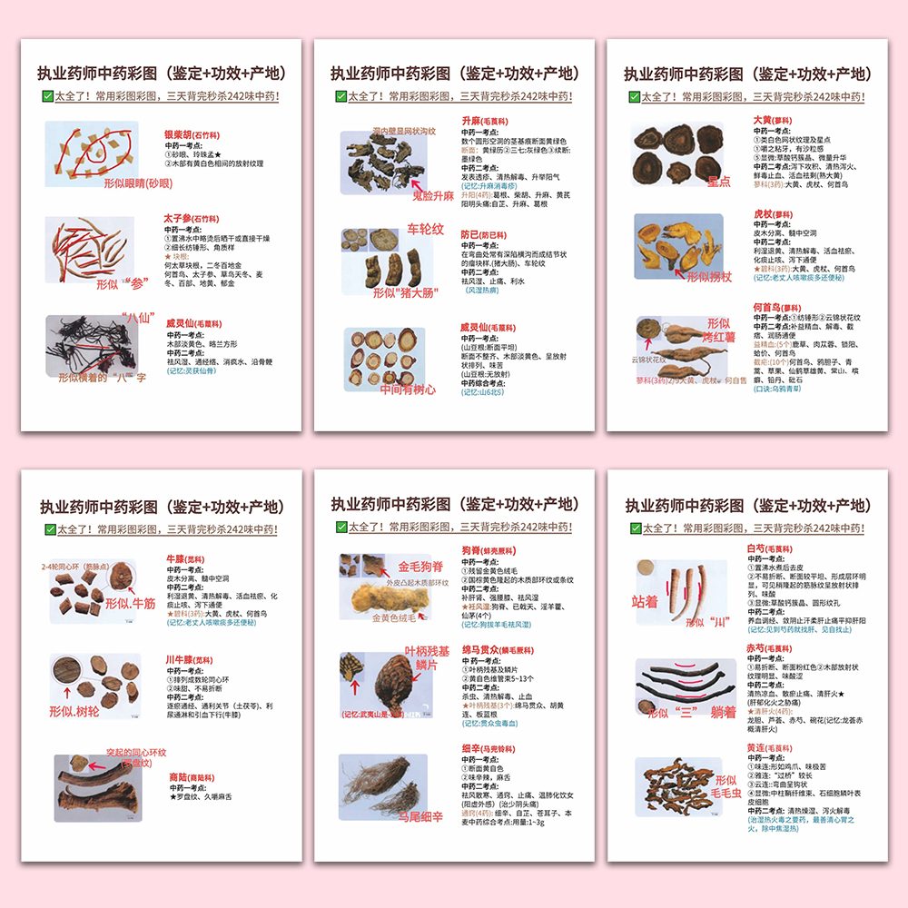 执业药师中医药彩图图鉴】基础药材搭配功效作用配伍口诀笔记贴画