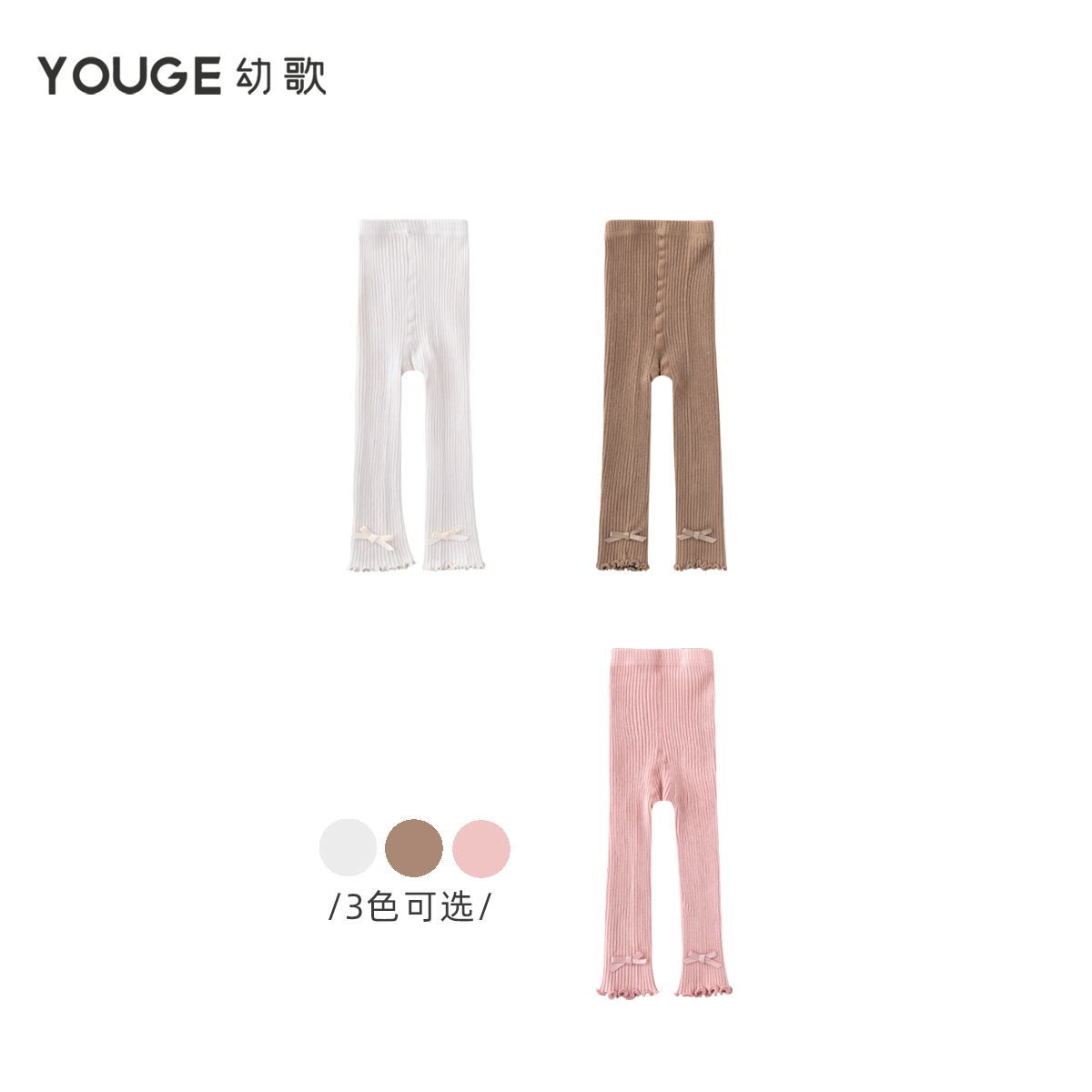 YOUGE幼歌婴幼儿春新精致木耳边弹力蝴蝶结柔软抗起球百搭打底裤