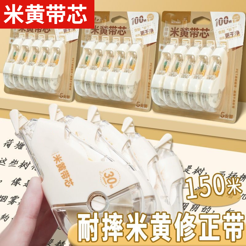 米黄色修正带初中生专用简约风隐形小学生笔记本色大容量涂改带黄色改正带护眼色耐摔带芯