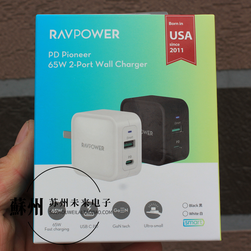 全新盒装睿能宝PD 65W氮化镓1A1C双口快充头适用于苹果手机平板笔记本等设备充电