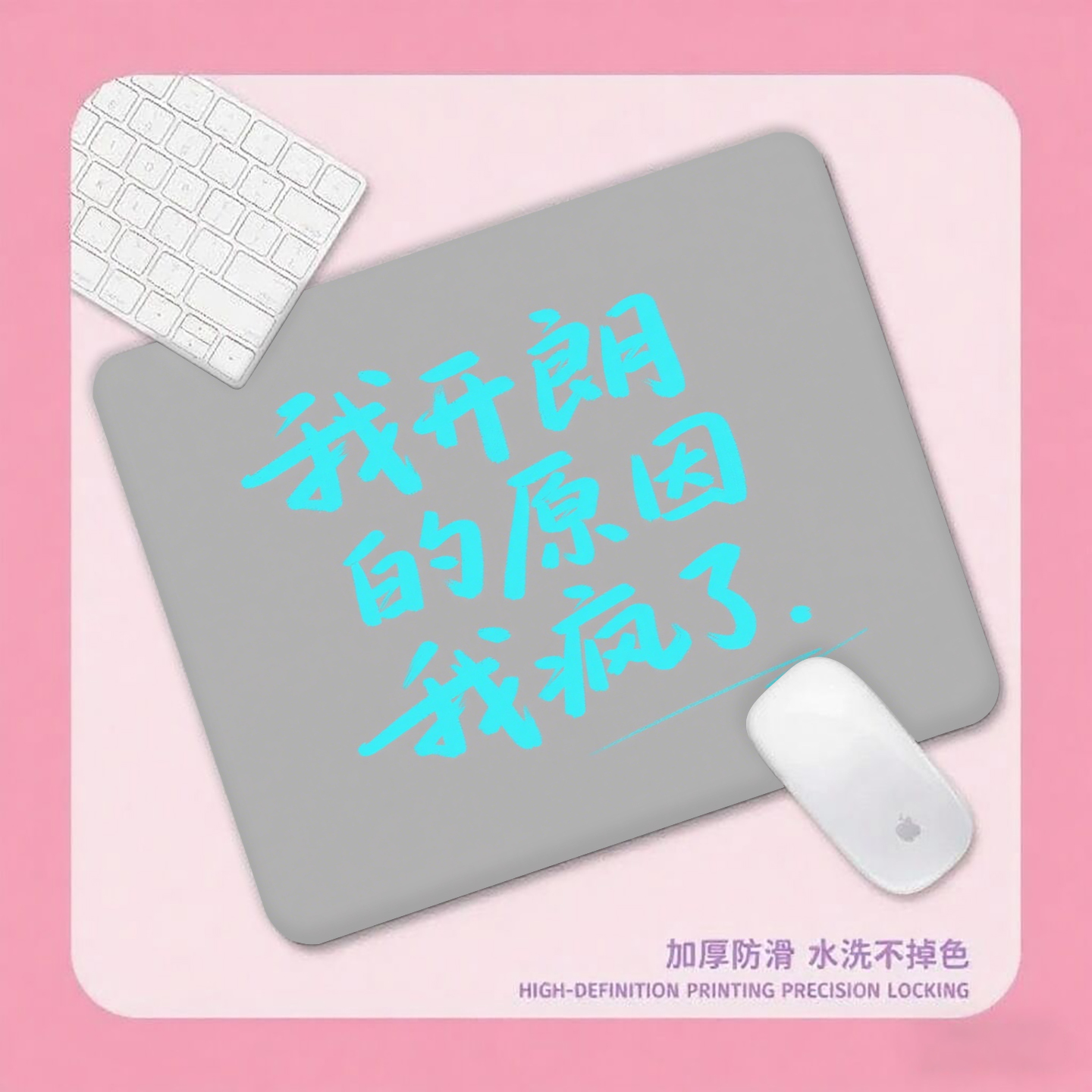 灰底篮字我开朗的原因鼠标垫电竞游戏垫原创加厚滑鼠垫文字简约笔