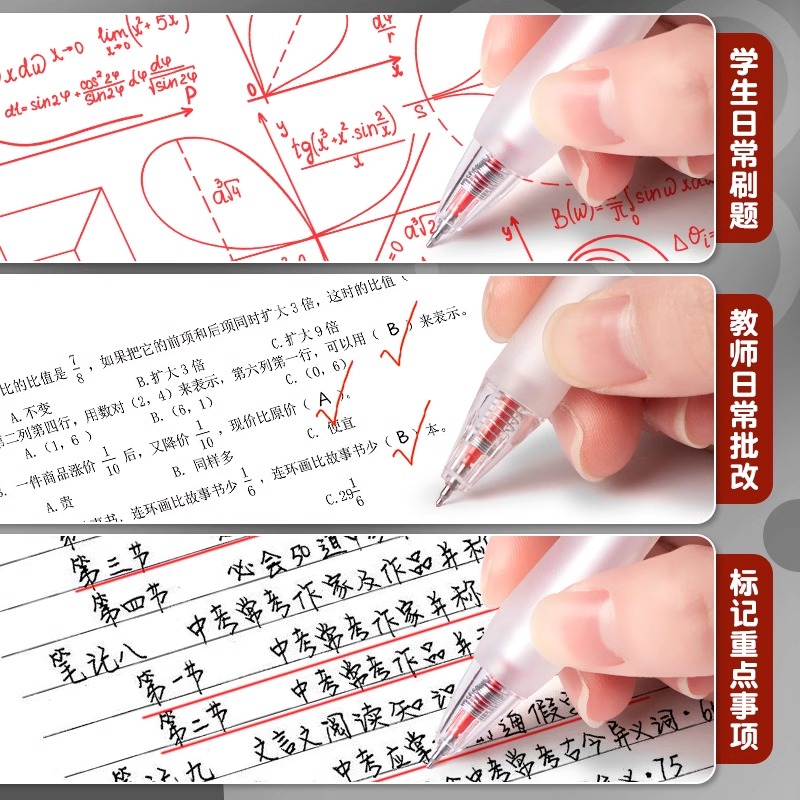 红色笔芯按动式中性笔替芯速干顺滑0.5老教师批改作业专用红笔芯
