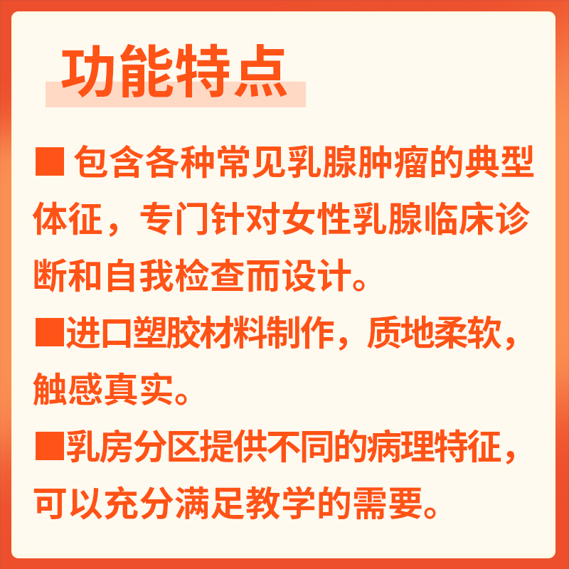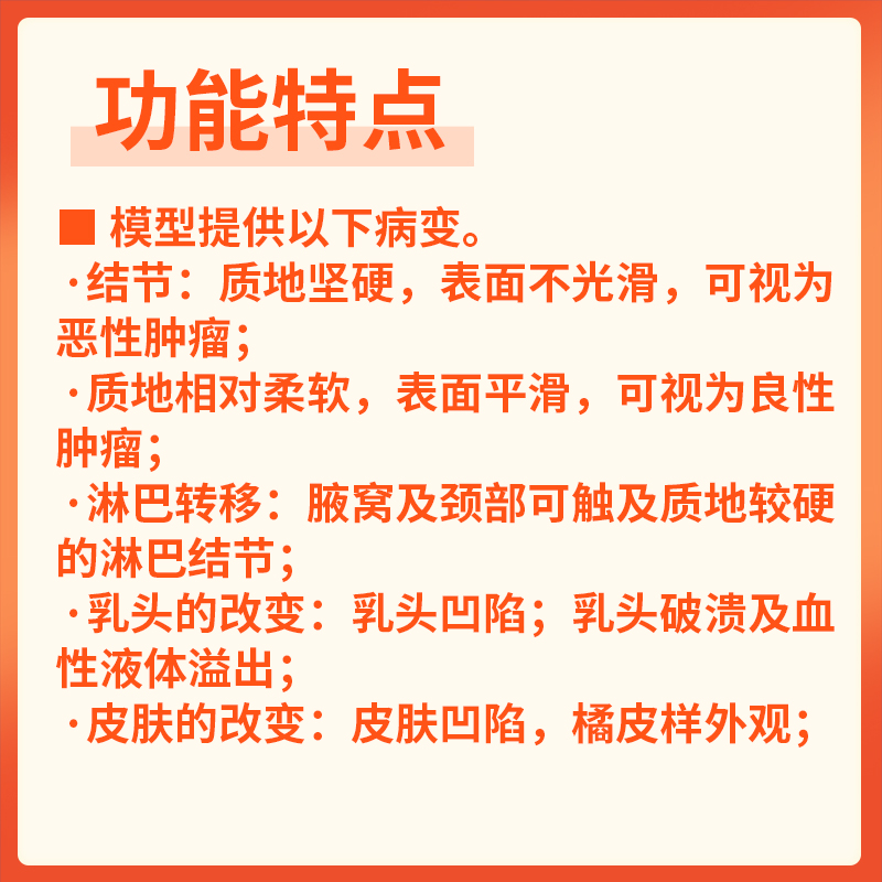 乳腺视诊触诊模型塑胶触感真实恶良性肿瘤腋窝淋巴转移乳头凹陷渗血橘皮样皮肤临床教学自查分区病变教具
