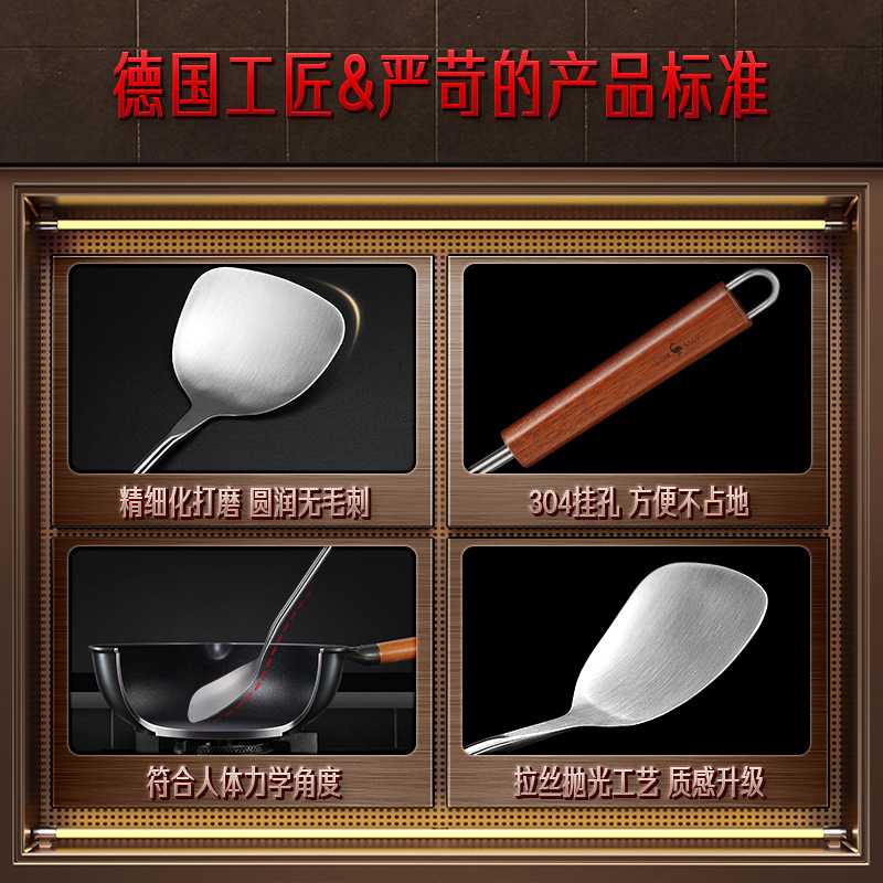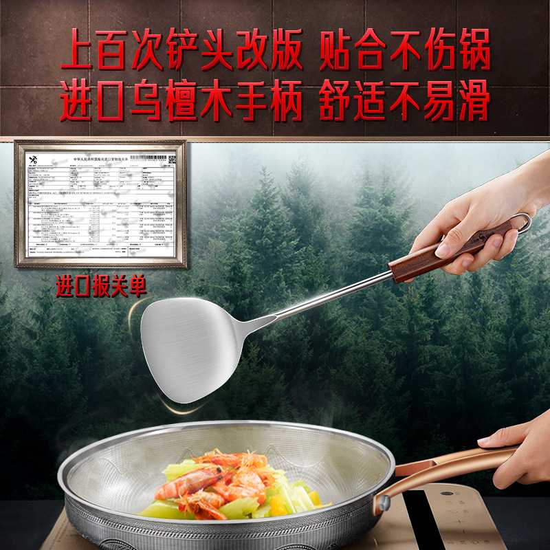 三四钢316L不锈钢锅铲炒菜铲子中式家用防烫锅铲厨房炒菜铲炒铲