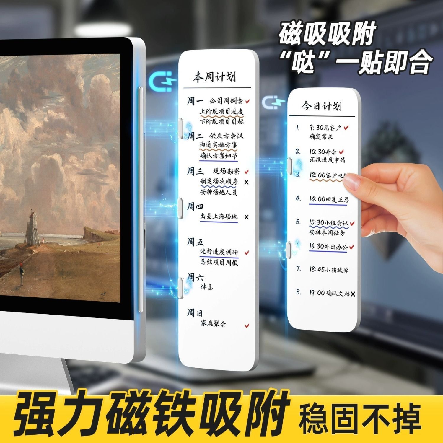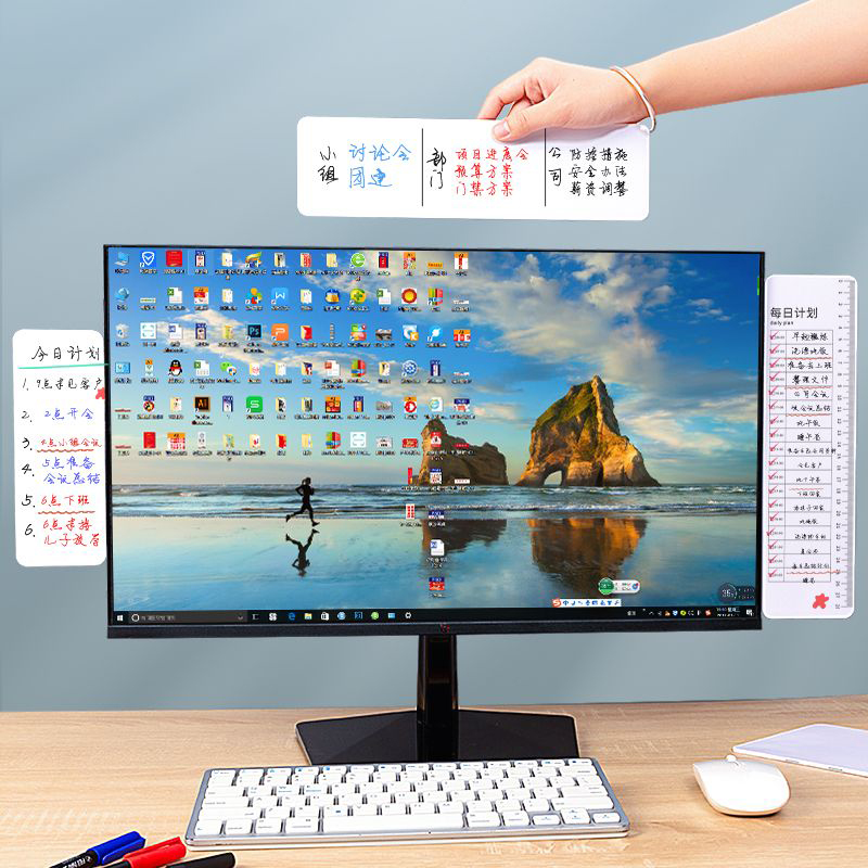 提醒留言板磁吸双面白板可擦电脑侧边屏幕事项板备忘提示板便利贴便签贴板办公桌记事板侧边夹大号学习