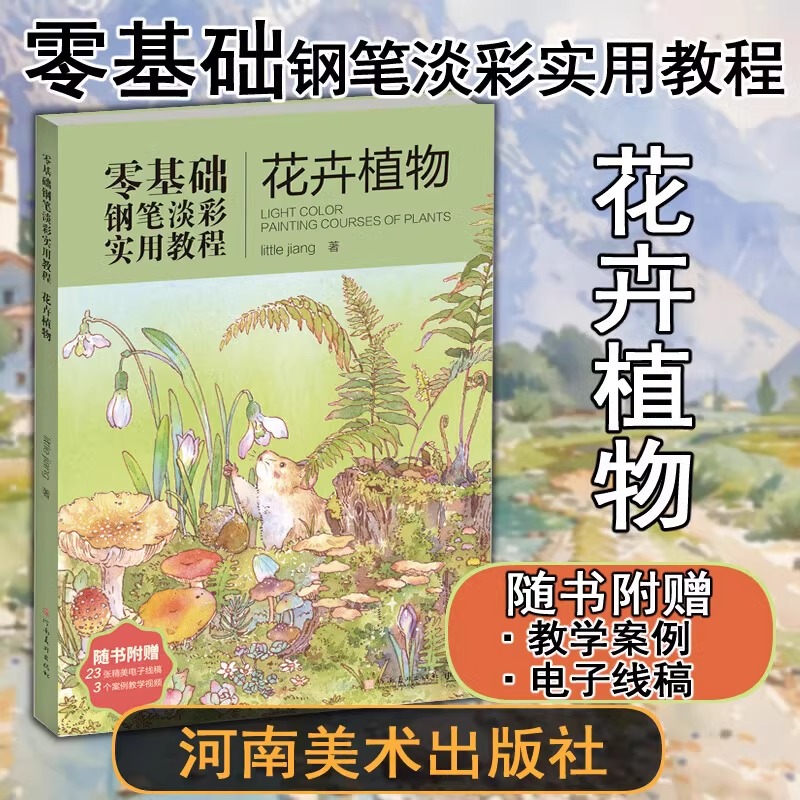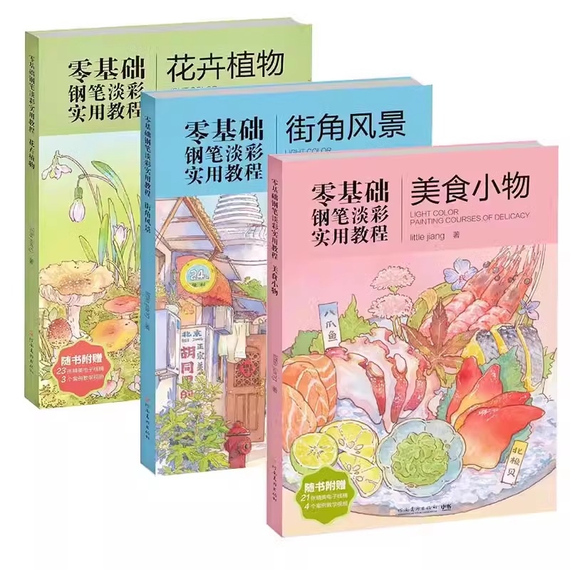 【视频教程】零基础钢笔淡彩实用教程little jiang著街角风景/花卉植物/美食小物日记手账插画高清线高详细配色视频教学河南美术社