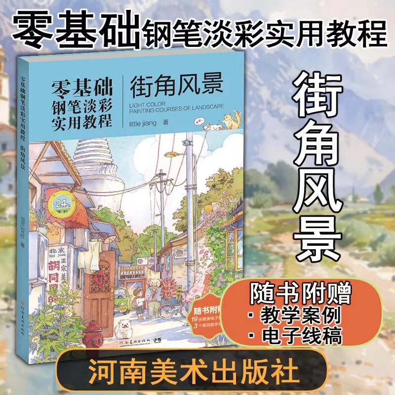 【3册可选】零基础钢笔淡彩实用教程:街角风景+花卉植物+美食小物 little jiang 著 正版包邮 绘画 河南美术出版社 钢笔淡彩教程