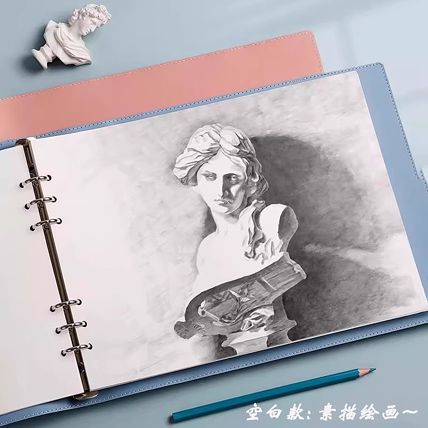 A4活页本横版软皮笔记本子高颜值精致高级大学生加厚空白本手绘本素描像素画方网格本思维导图可拆卸替芯外壳