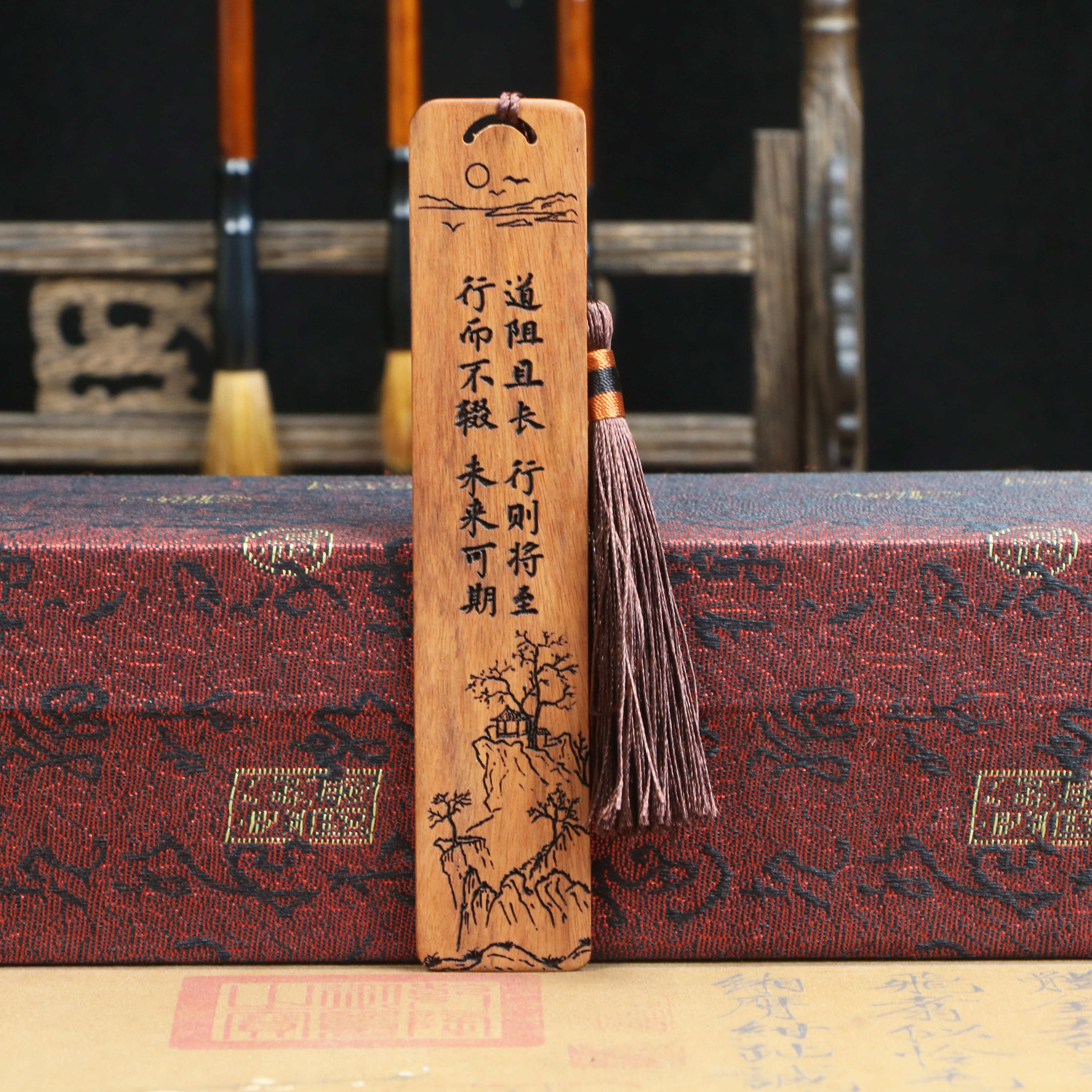 复古国学经典竹木书签定制礼品荀子修身篇励志名言名句道阻且长