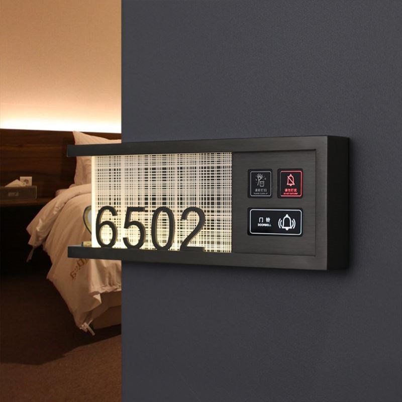 酒店门牌定制不锈钢镶嵌式转角智能宾馆带门铃勿扰客房发光门牌号