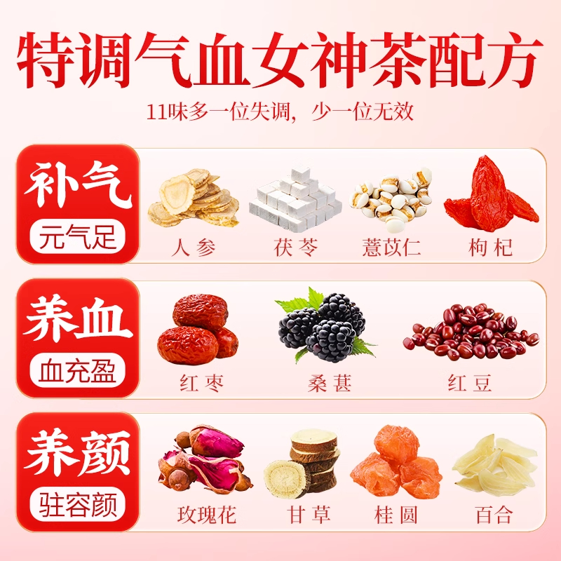 红参黄芪麦冬红枣枸杞茶旗舰店正品养生茶可搭配调理气血产品使用