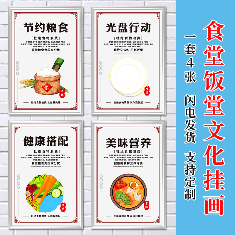 食堂文化宣传标语校园餐厅珍惜粮食节约粮食贴纸倡导光盘行动节约粮食文明用餐温馨提示牌上墙贴装饰挂画定做