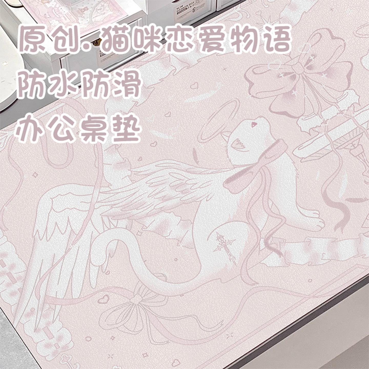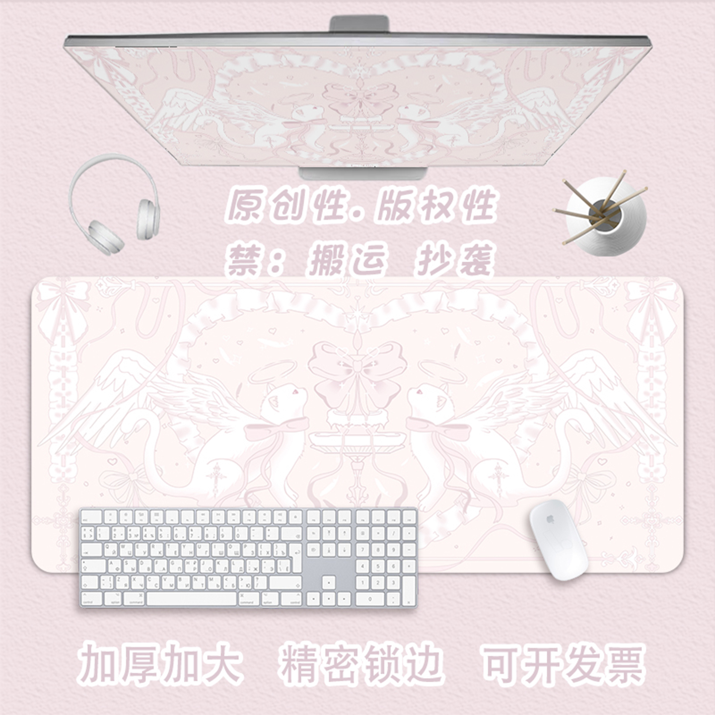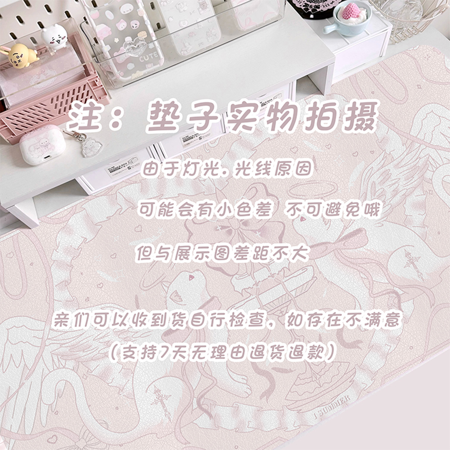 粉色少女心原创鼠标垫超大号皮革防水防油女生高颜值电脑键盘桌垫
