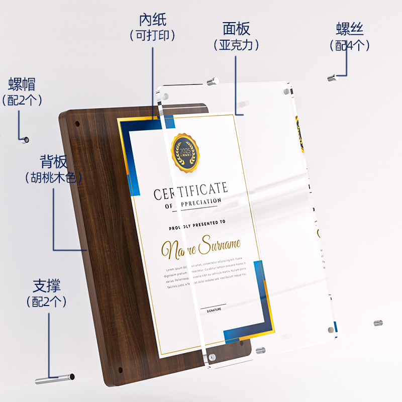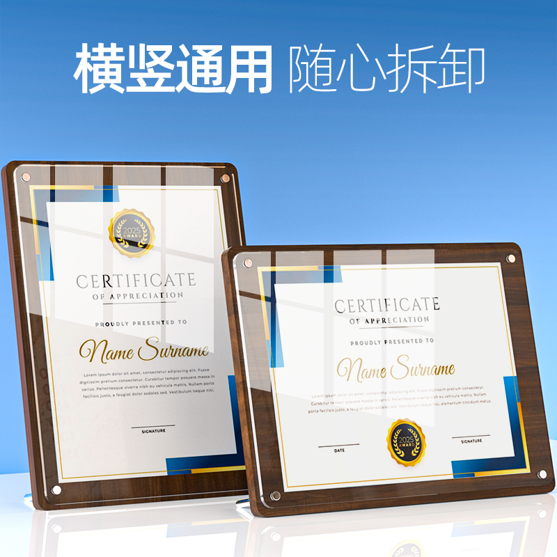 A4荣誉证书框实木相框定制高档专利证书展示牌珠宝鉴定授权书聘书获奖状装裱框桌面摆台优秀员工证书打印制作