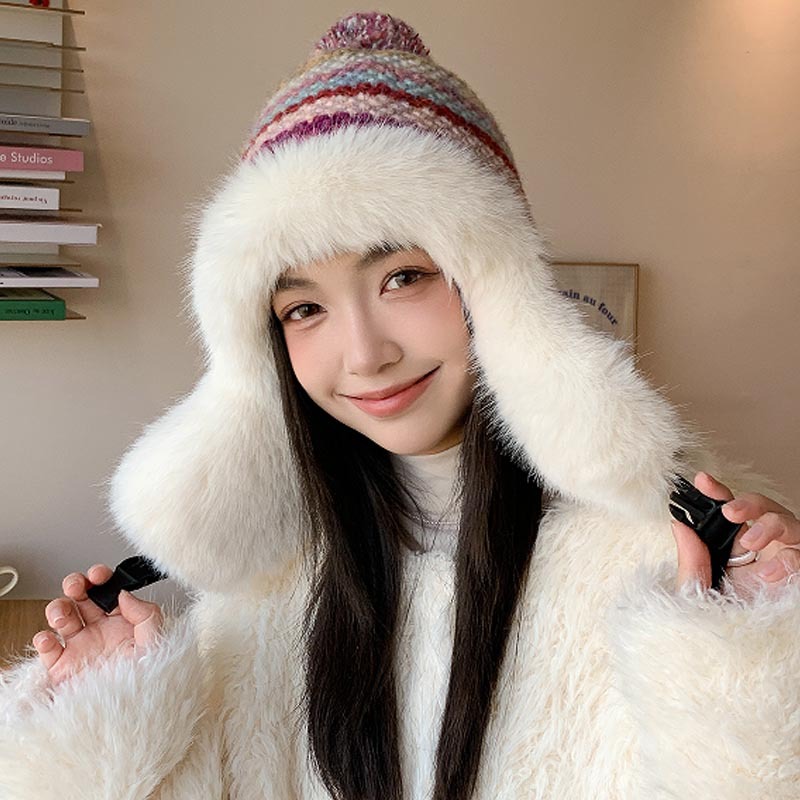 全新升级款冬季天高级感户外骑车保暖防寒护耳东北棉帽针织毛绒帽