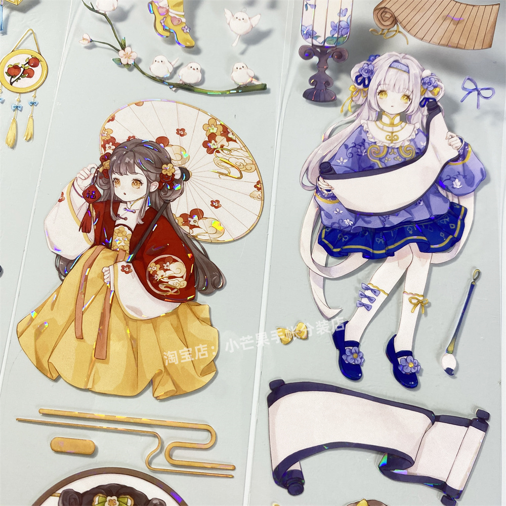 手帐分装胶带汉服少女新七天可爱儿童古风PET素材账流麻贴纸咕卡