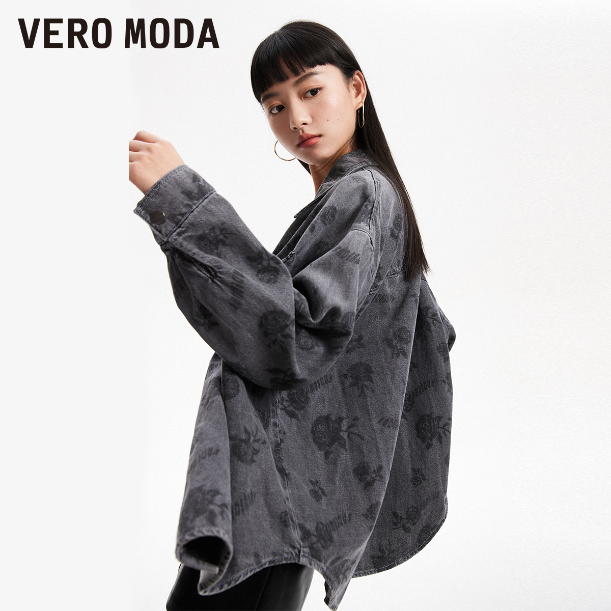 Vero Moda奥莱衬衫女秋季新款时尚休闲百搭廓形玫瑰提花街头上衣