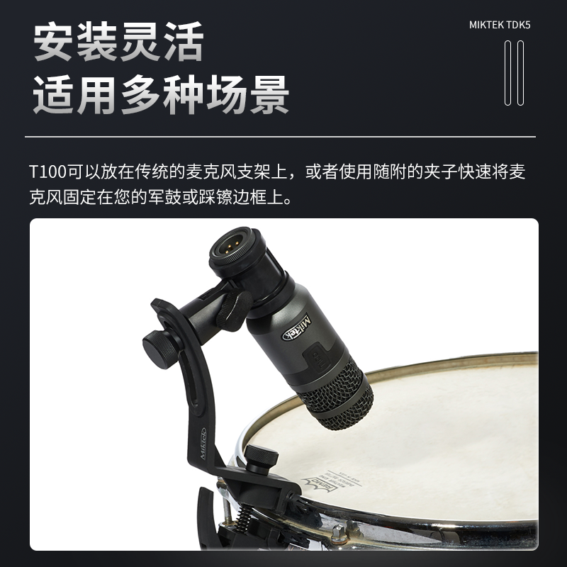 Miktek TDK5 动态鼓麦克风5件套装反向抑制反馈前增益鼓麦